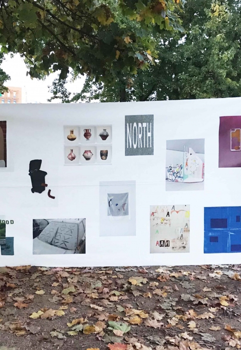 As the exhibition was held on fabric, visitors were invited to use the plan while folding and unfolding the work, to discover more on each artist. Alternatively when it was held up like a billboard on The Art Licks Trail event, visitors could use the plan like a tourist uses a travel guide at a viewing point.